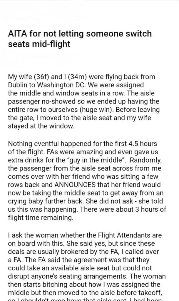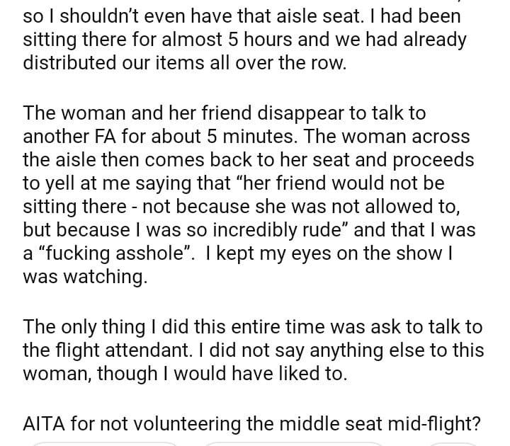 AITA for not letting someone switch seats mid-flight