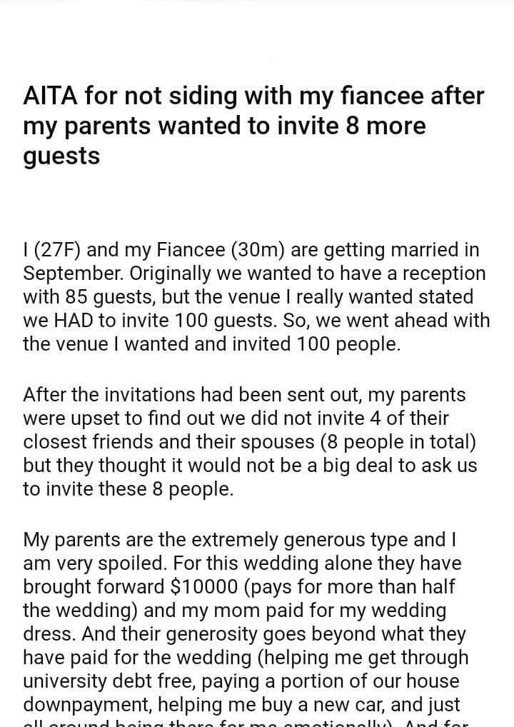 AITA for not siding with my fiancee