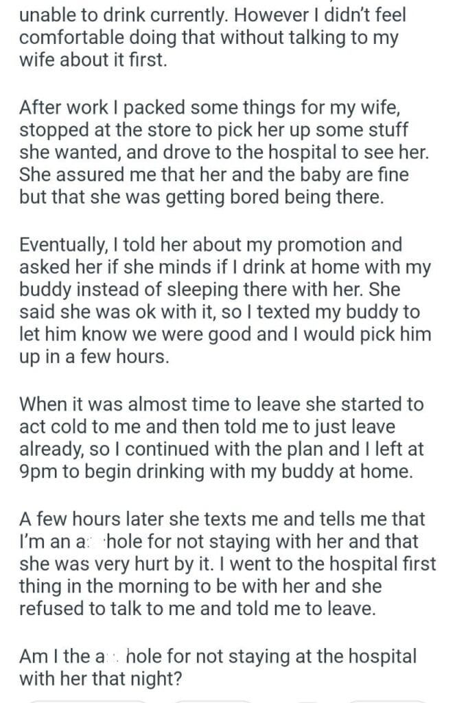 AITA for not sleeping at the hospital with my wife?