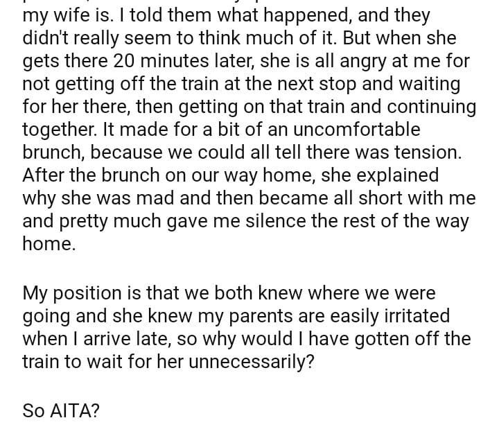 AITA for not waiting for my wife at the next subway station