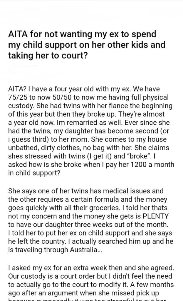 AITA for not wanting my ex to spend my child support