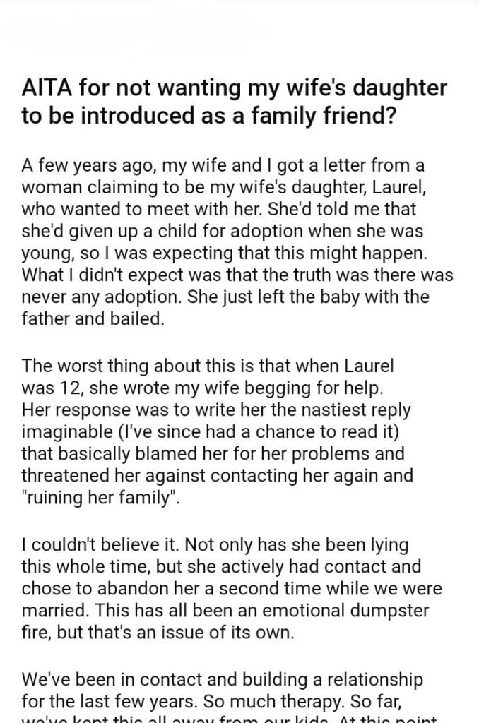 AITA for not wanting my wife’s daughter to be introduced as a family friend?