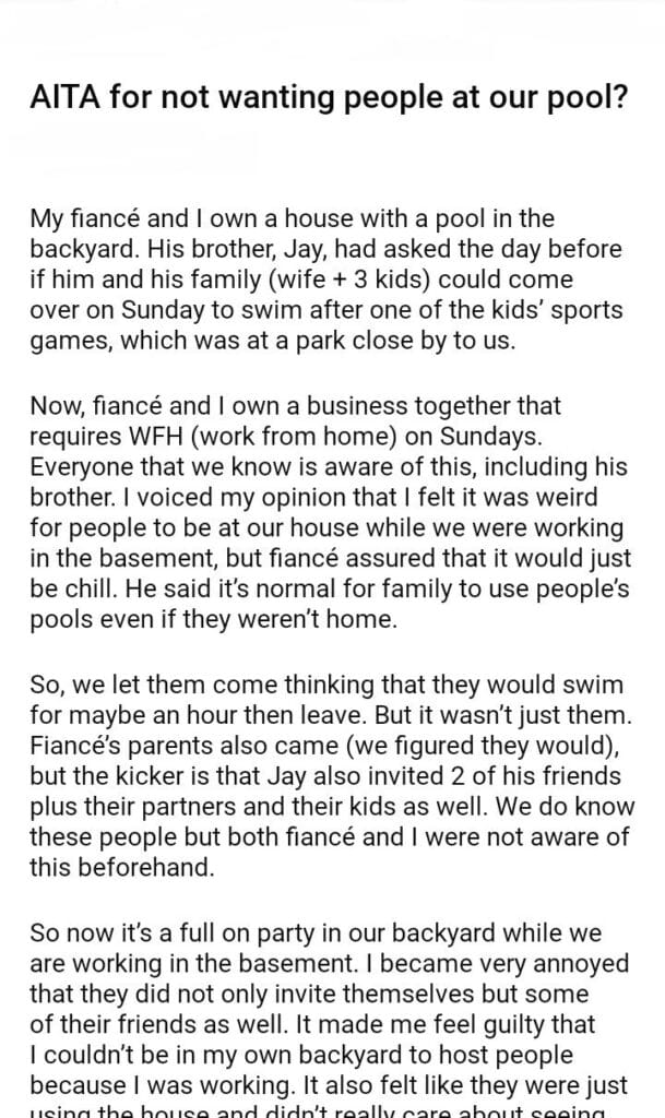 AITA for not wanting people at our pool?