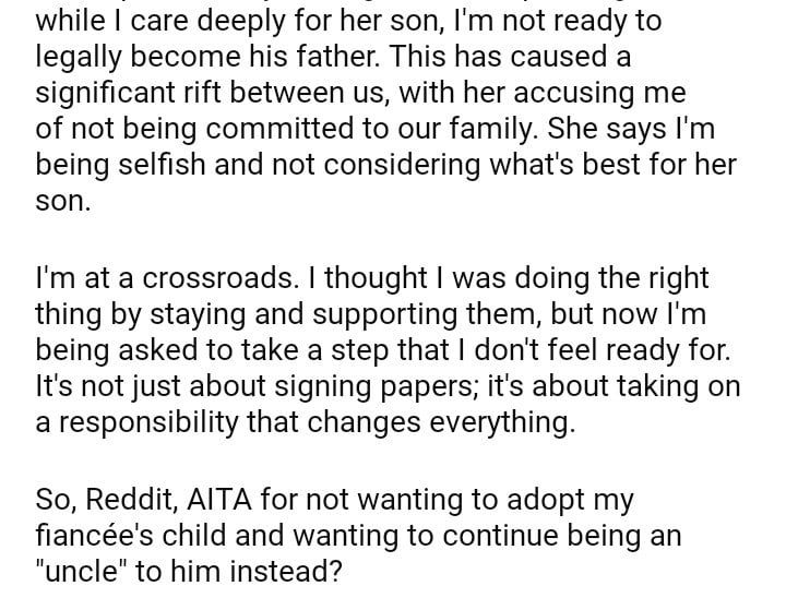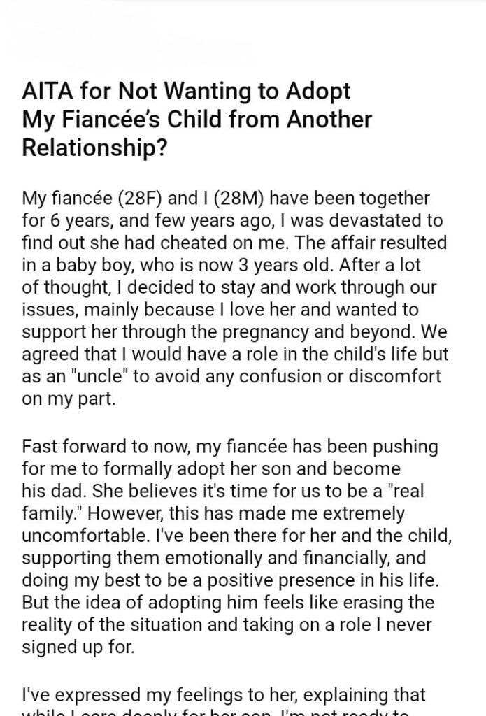 AITA for Not Wanting to Adopt My Fiancée’s Child from Another Relationship?