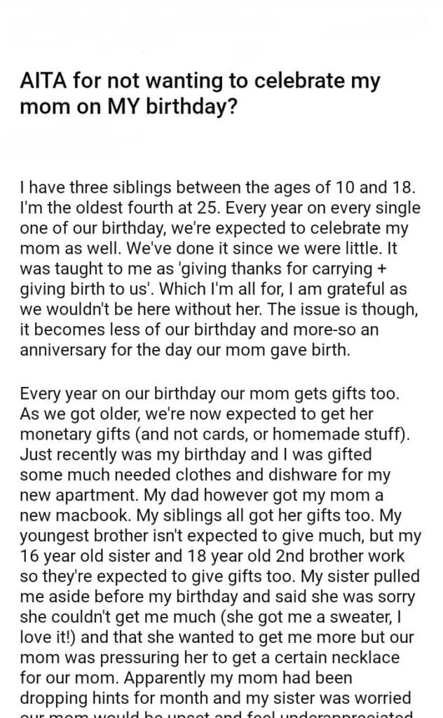 AITA for not wanting to celebrate my mom on MY birthday?