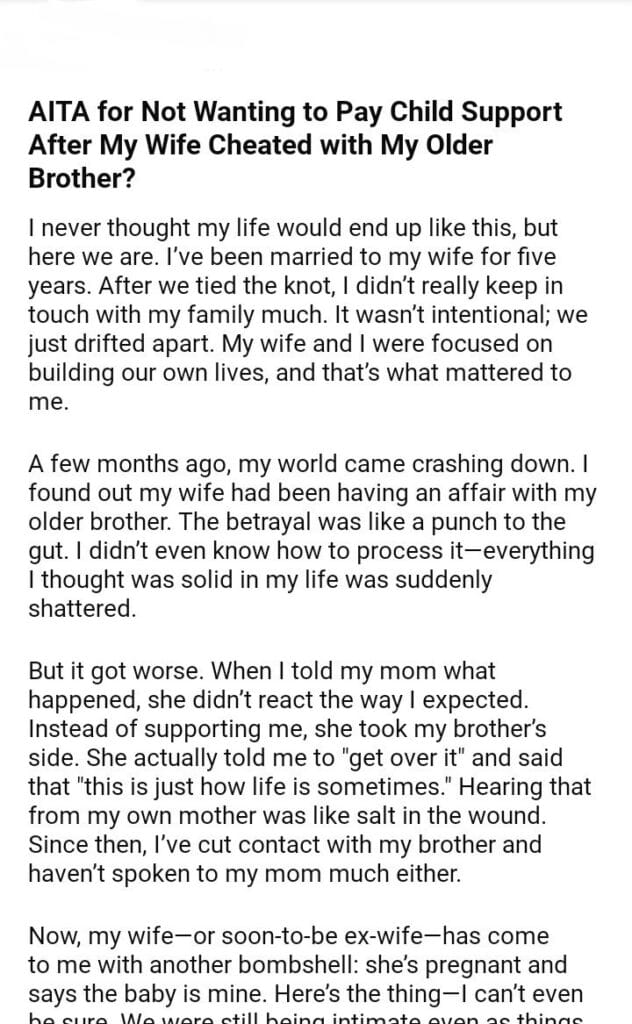 AITA for Not Wanting to Pay Child Support After What My Wife Did