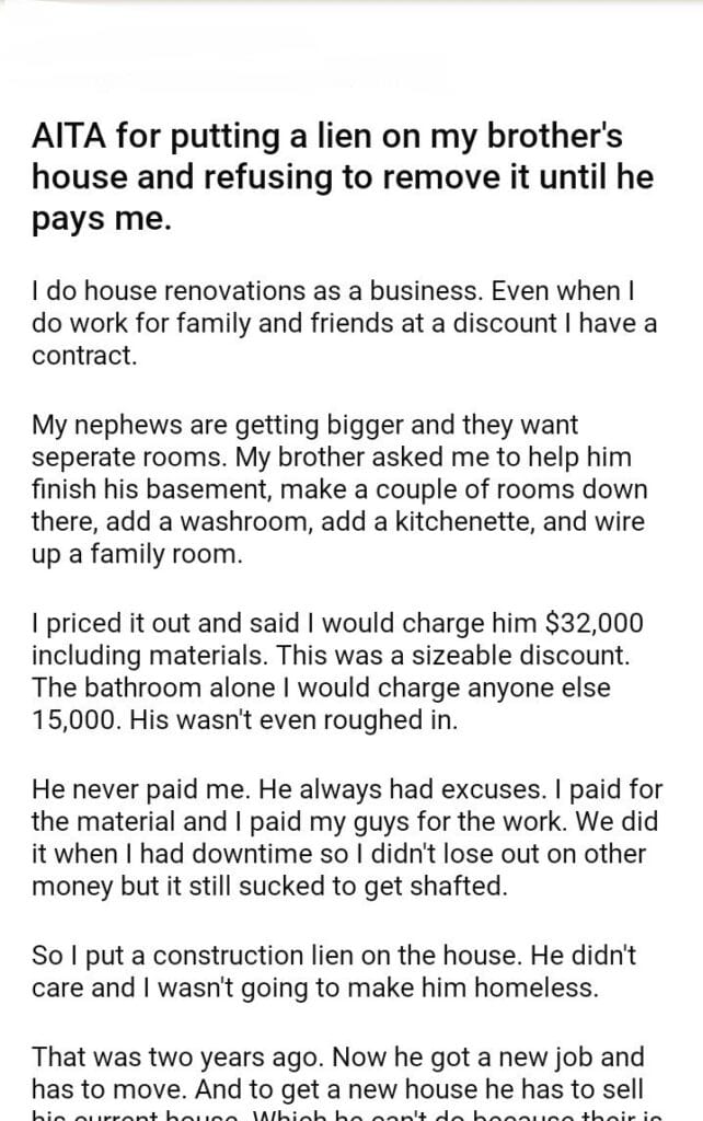 AITA for putting a lien on my brother’s house