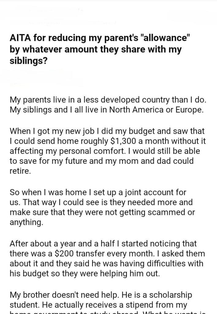 AITA for reducing my parent’s “allowance”