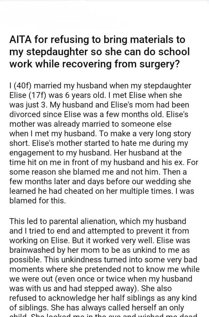 AITA for refusing to bring materials to my stepdaughter