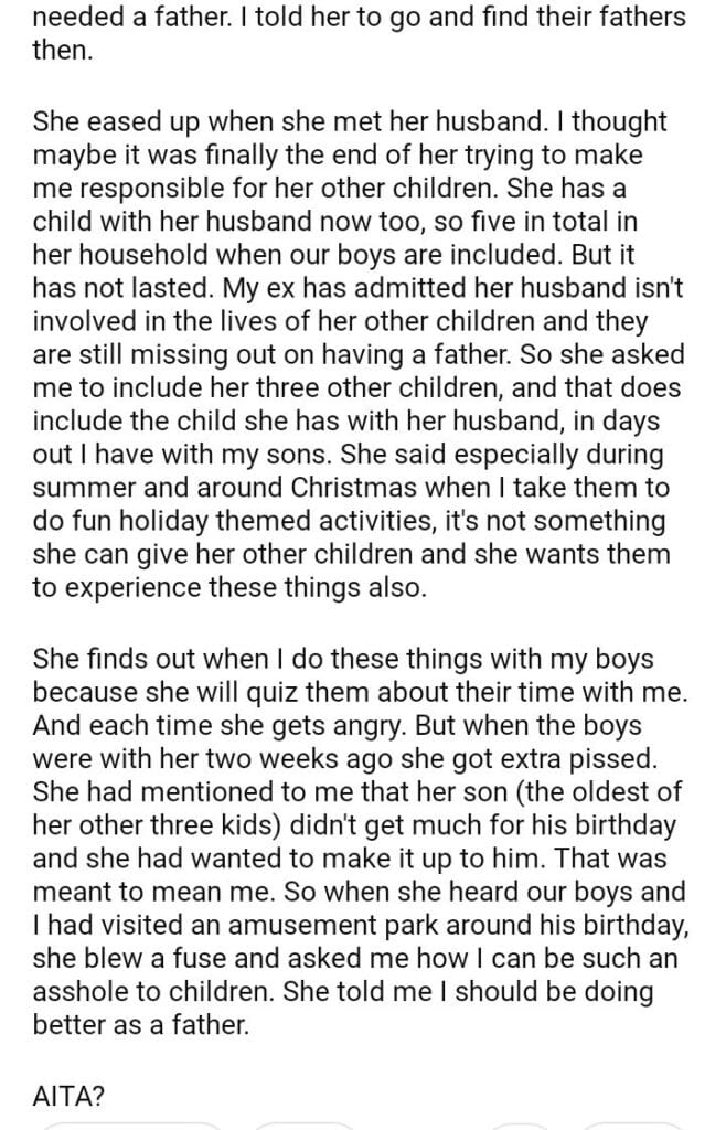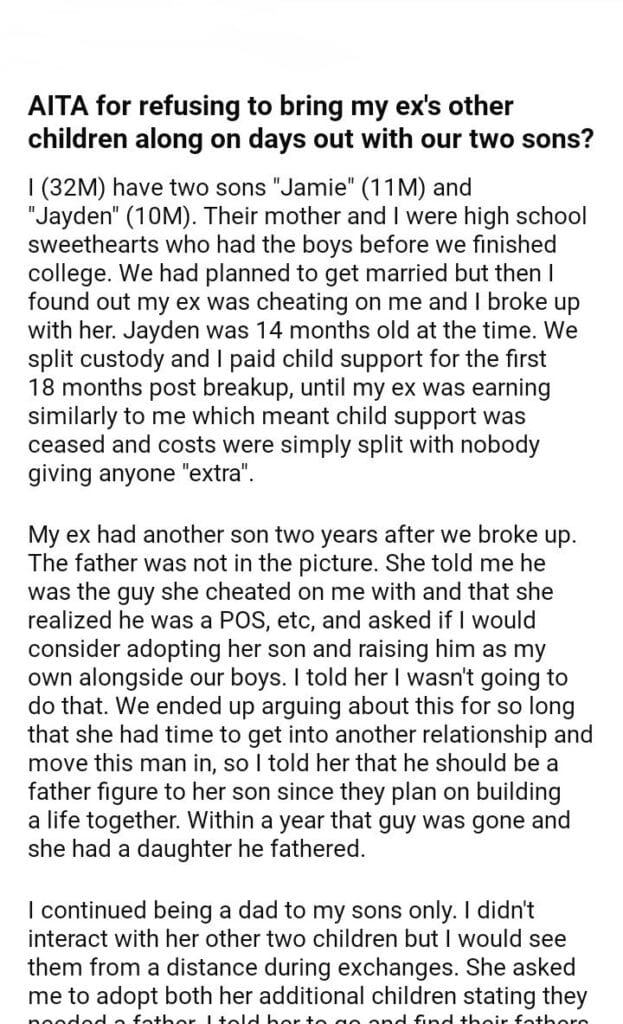 AITA for refusing to bring my ex’s other children along