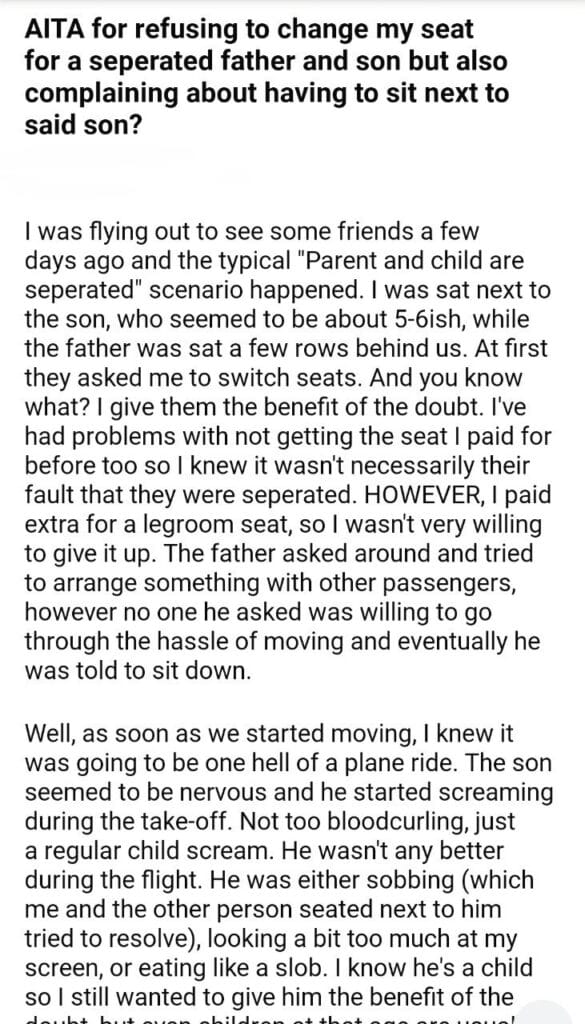AITA for refusing to change my seat
