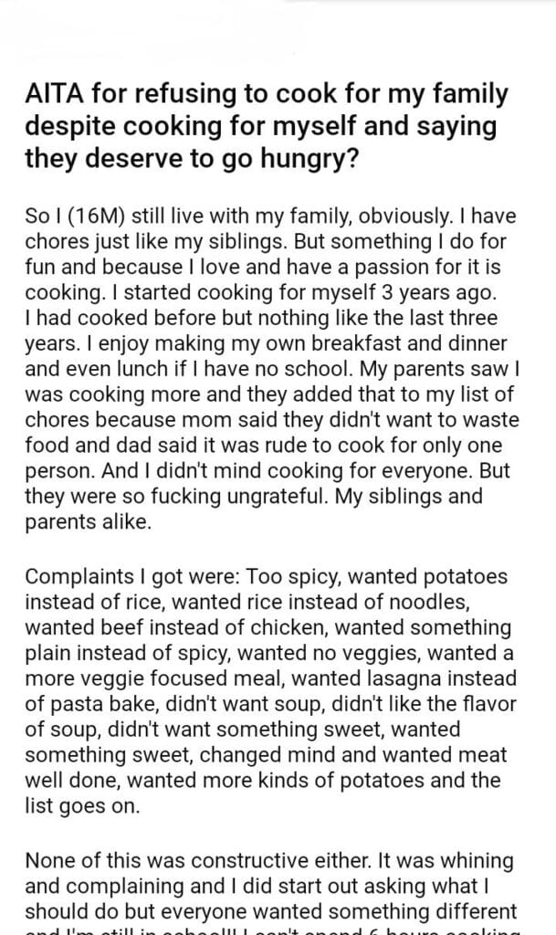 AITA for refusing to cook for my family