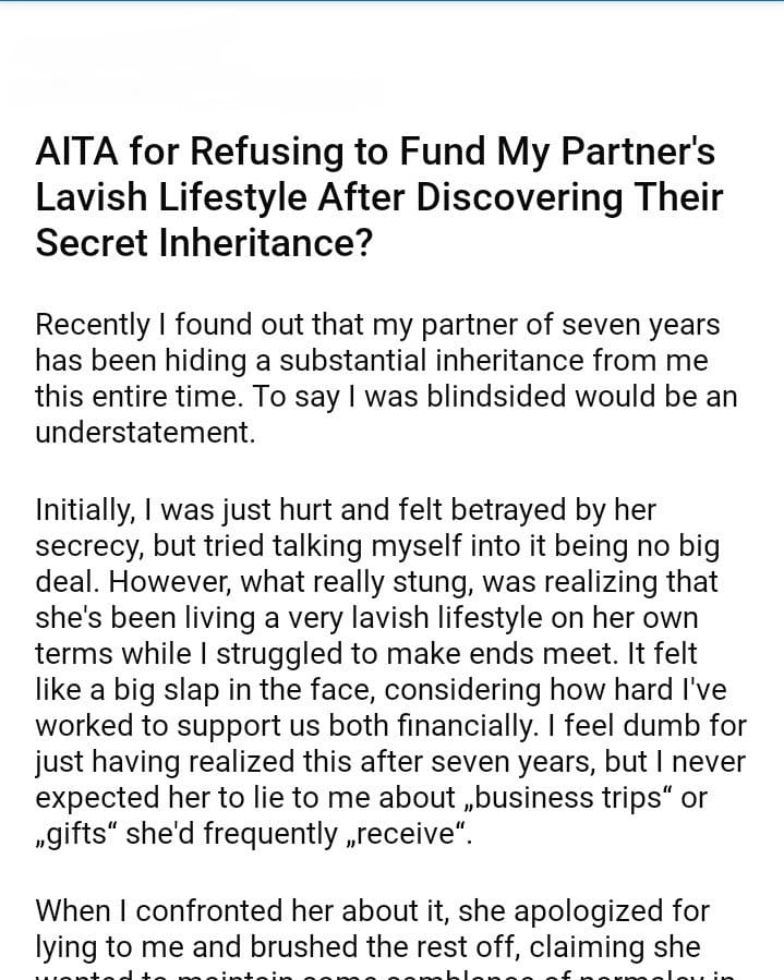AITA for Refusing to Fund My Partner’s Lifestyle