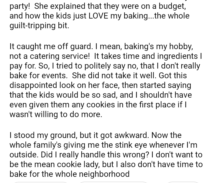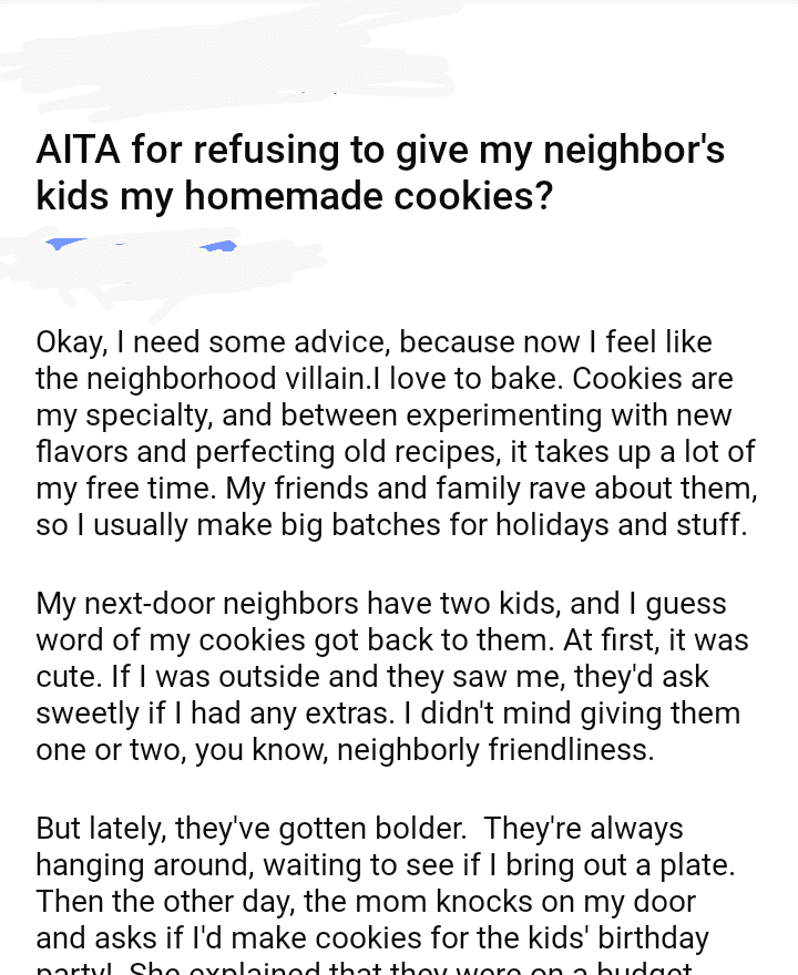 AITA for refusing to give my neighbor’s kids my homemade cookies?