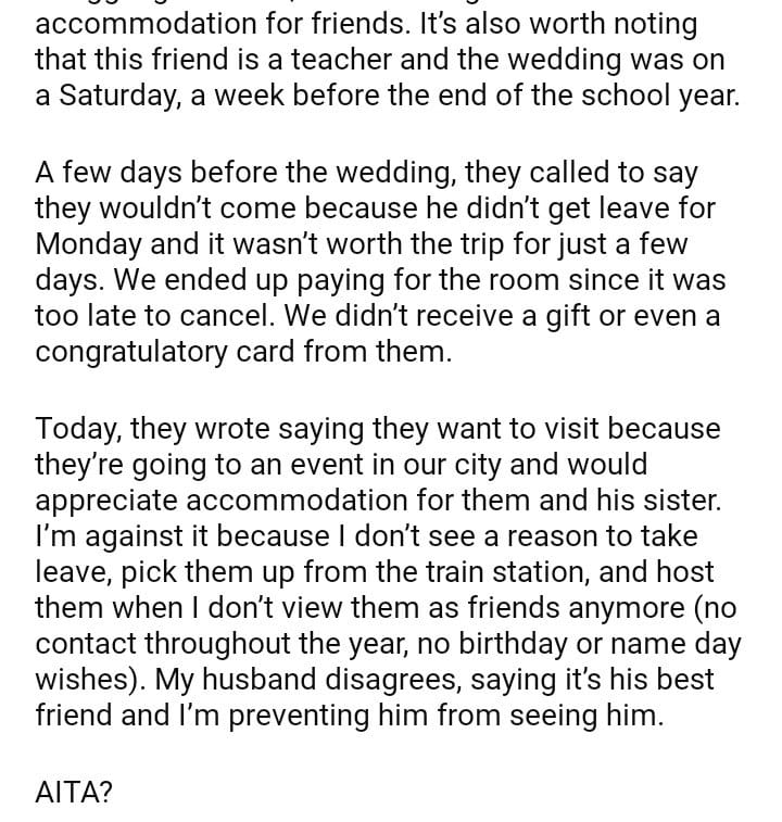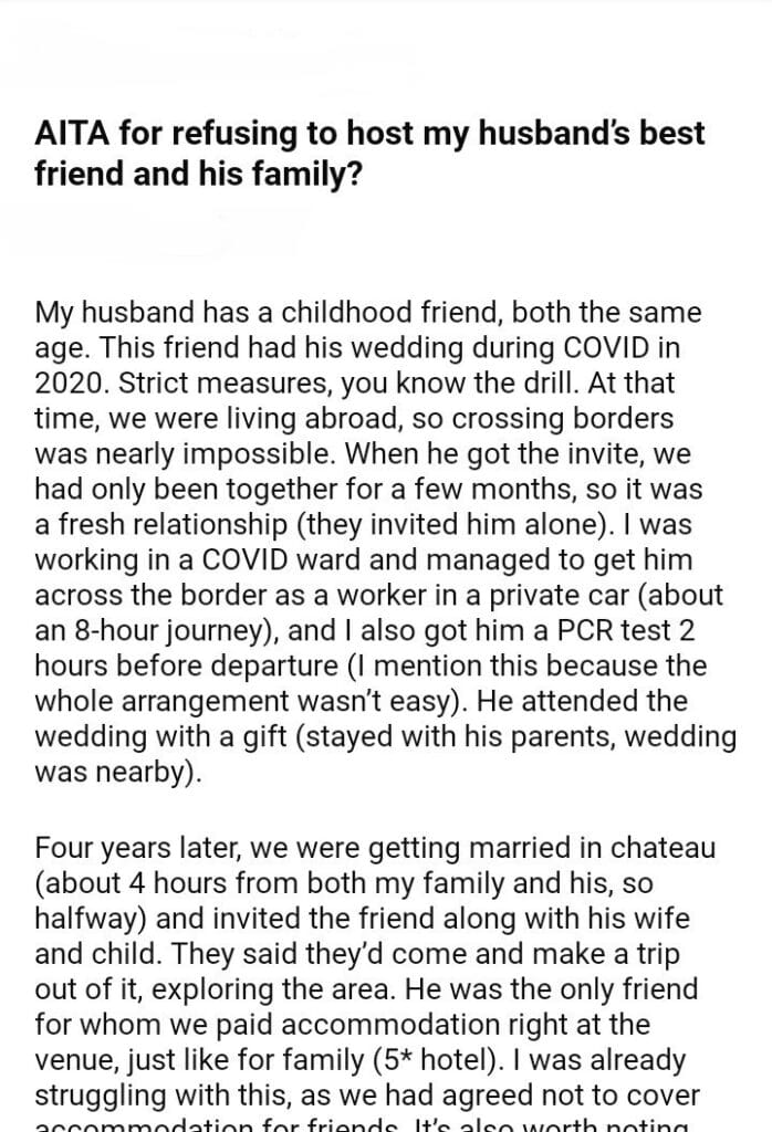 AITA for refusing to host my husband’s best friend and his family?