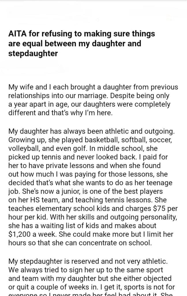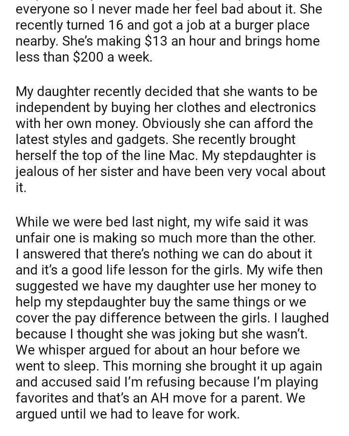 AITA for refusing to making sure things are equal between my daughter and stepdaughter
