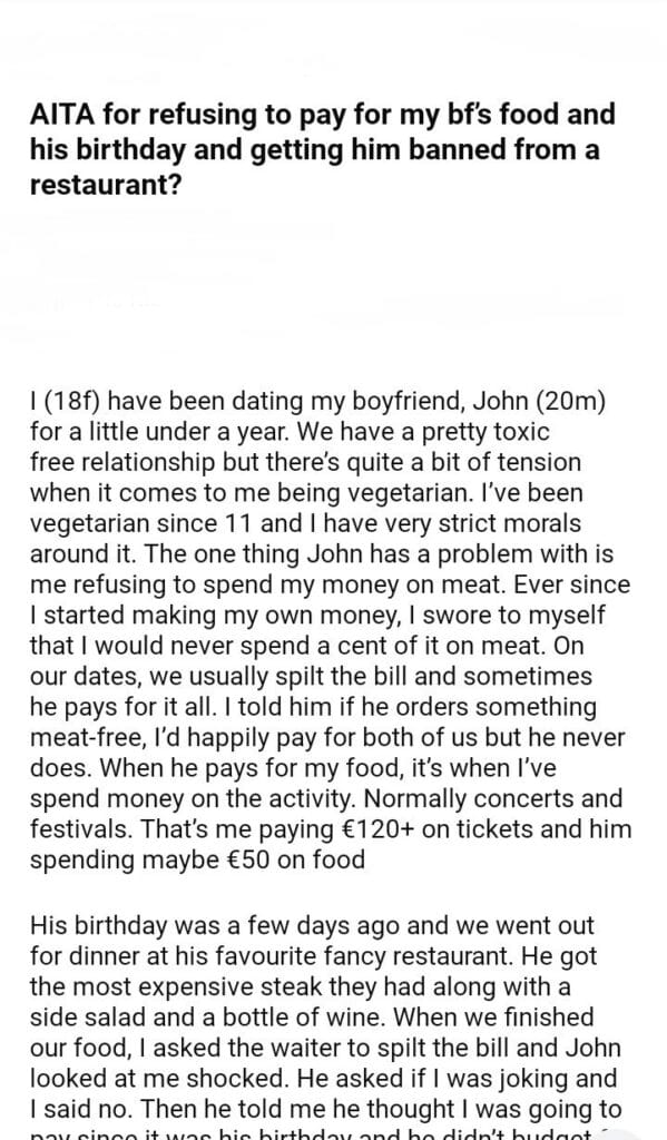 AITA for refusing to pay for my bf’s food and his birthday
