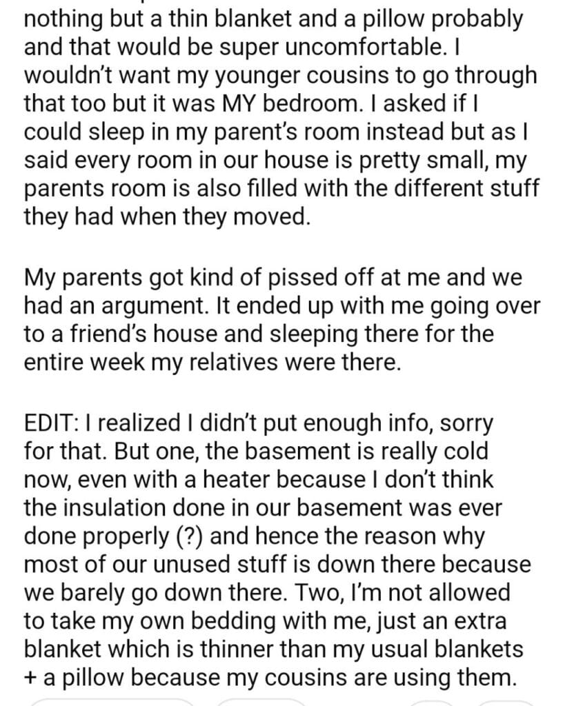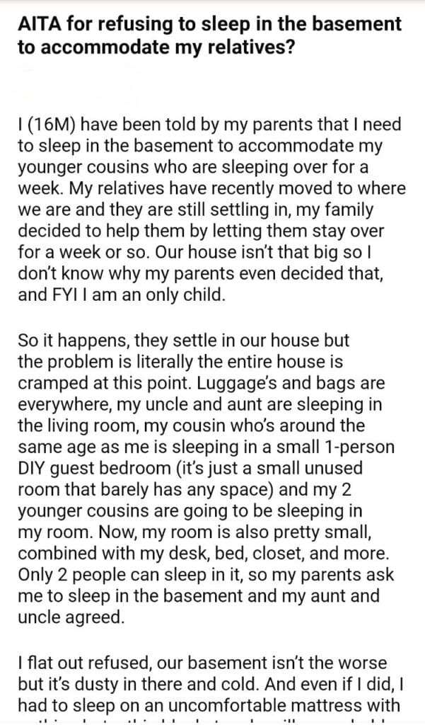 AITA for refusing to sleep in the basement