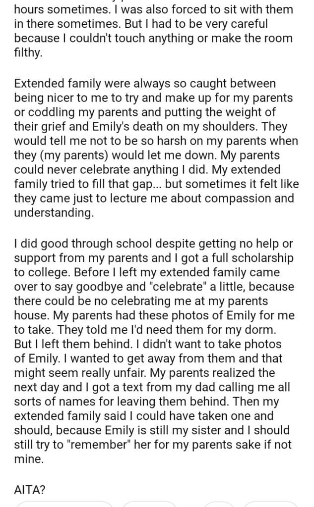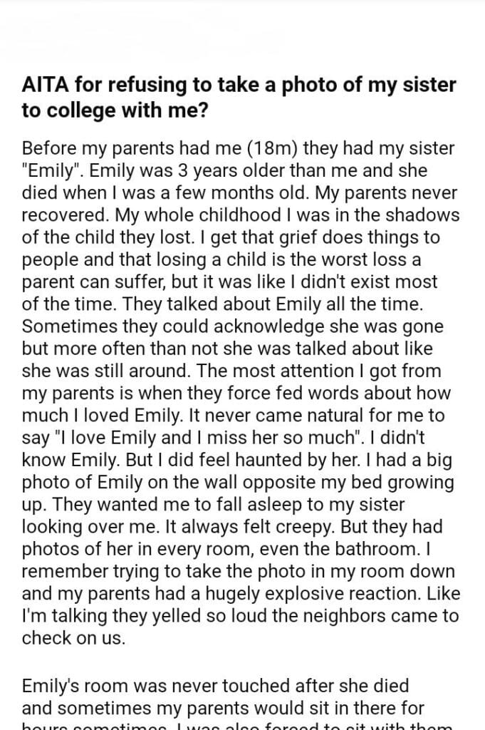 AITA for refusing to take a photo of my sister to college with me?