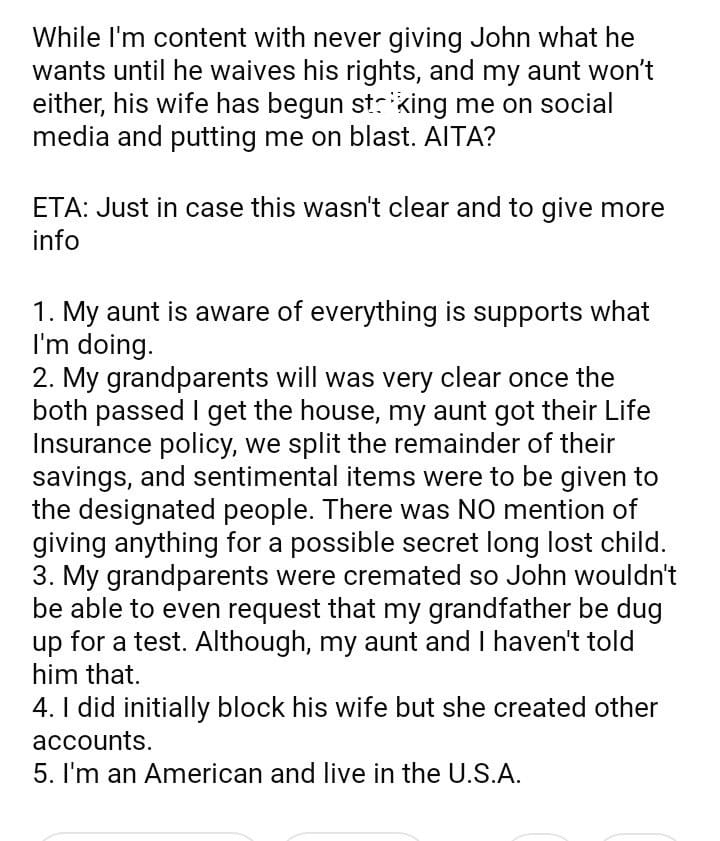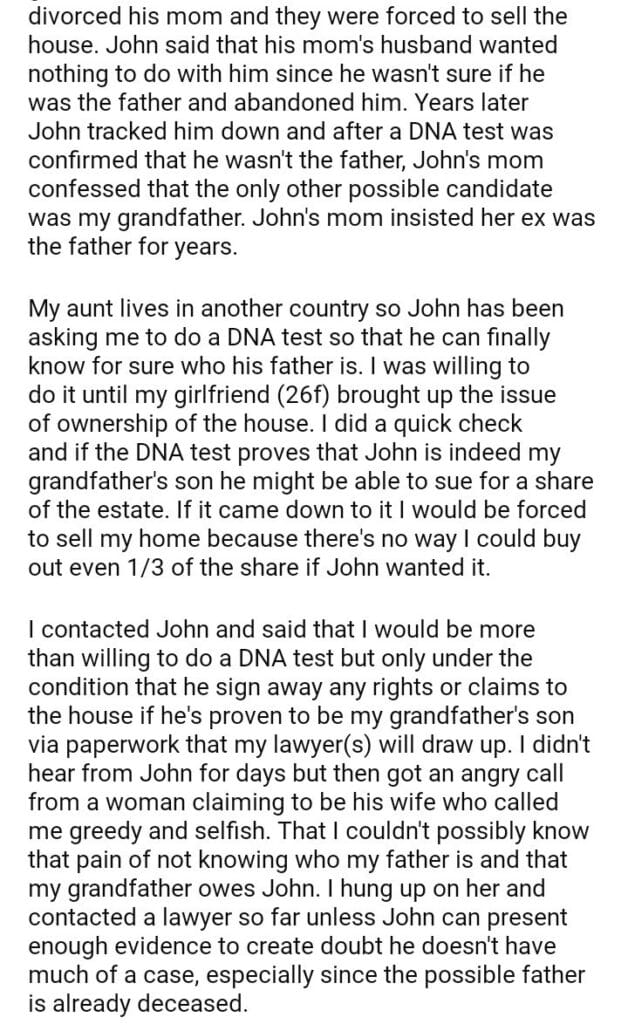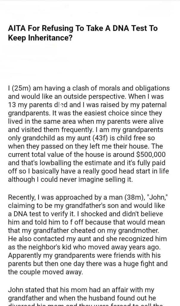 AITA For Refusing To Take A Test To Keep Inheritance?