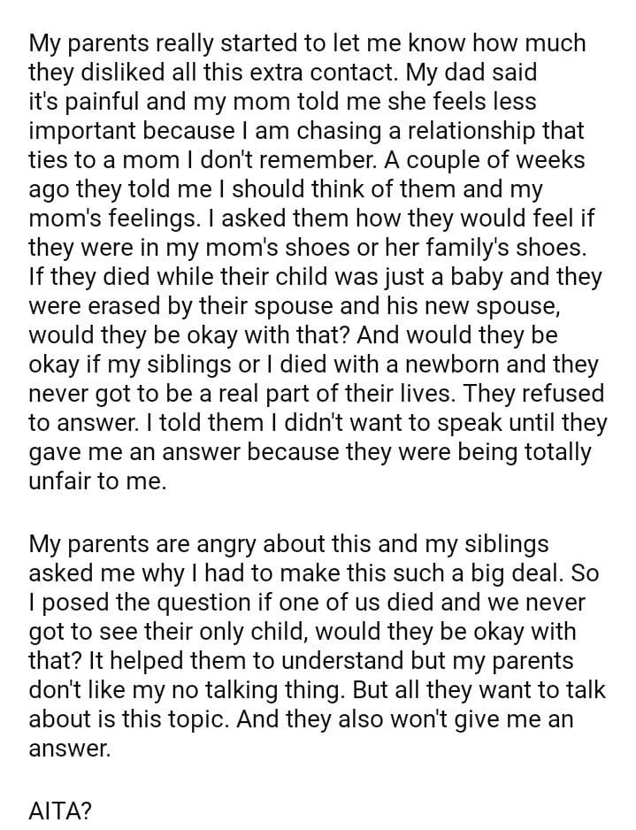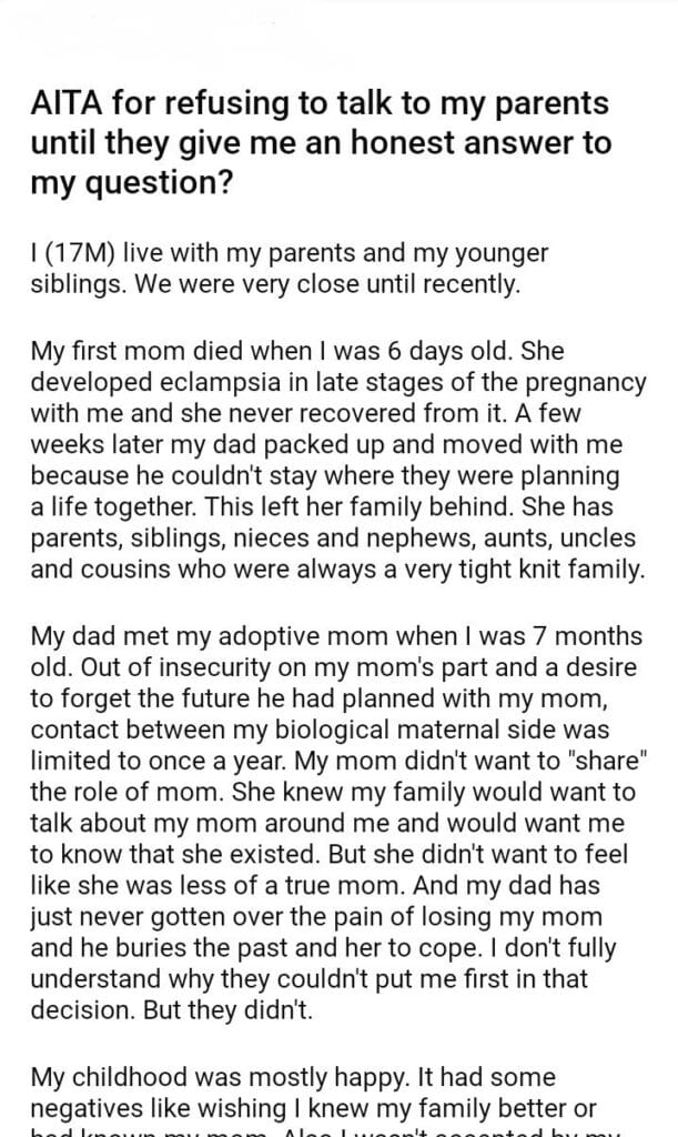 AITA for refusing to talk to my parents until they give me an honest answer to my question?