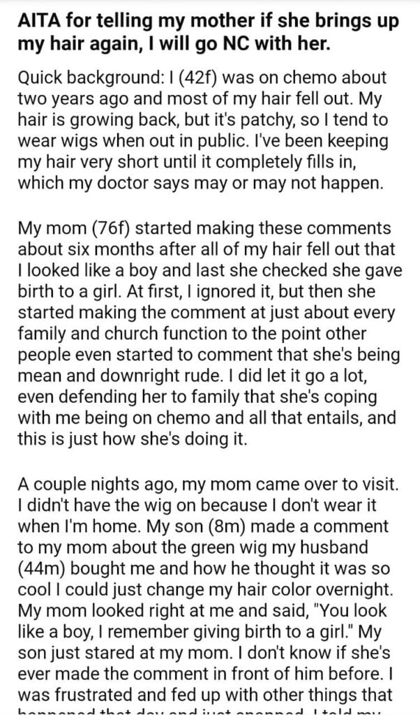 AITA for saying I will go NC with her.