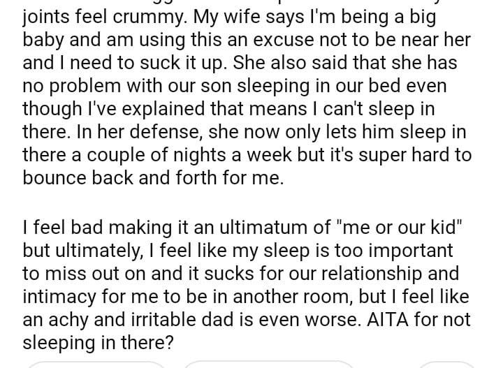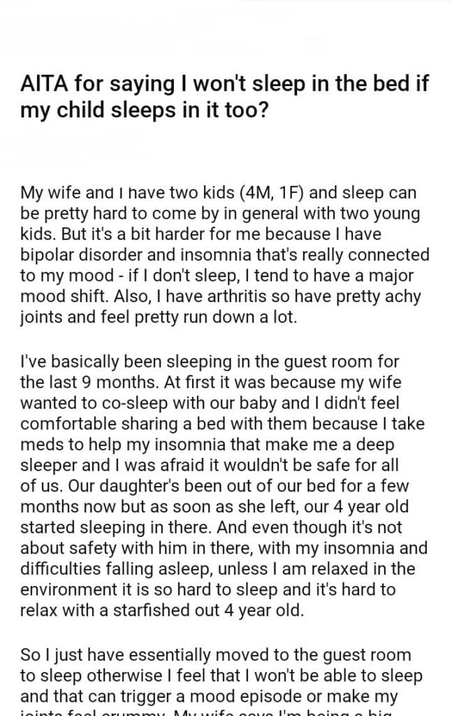 AITA for saying I won’t sleep in the bed if my child sleeps in it too?