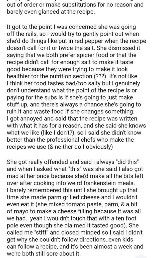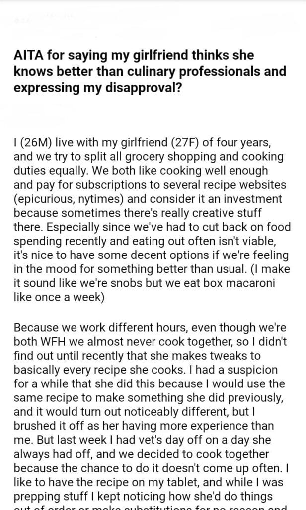 AITA for saying my girlfriend thinks she knows better than culinary professionals