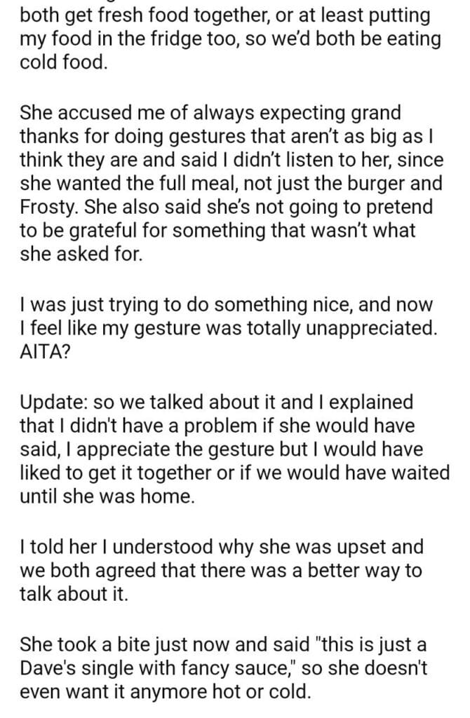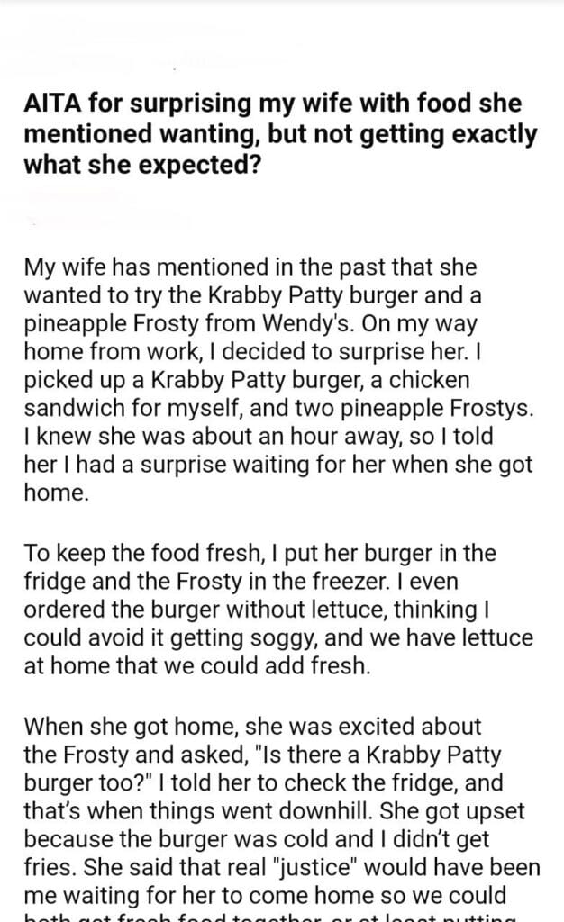 AITA for surprising my wife with food