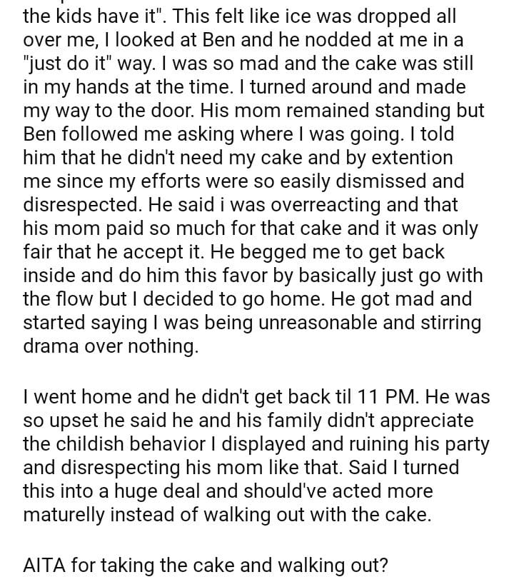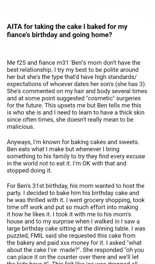 AITA for taking the cake I baked for my fiance’s birthday and going home?