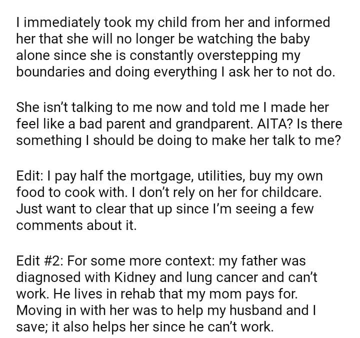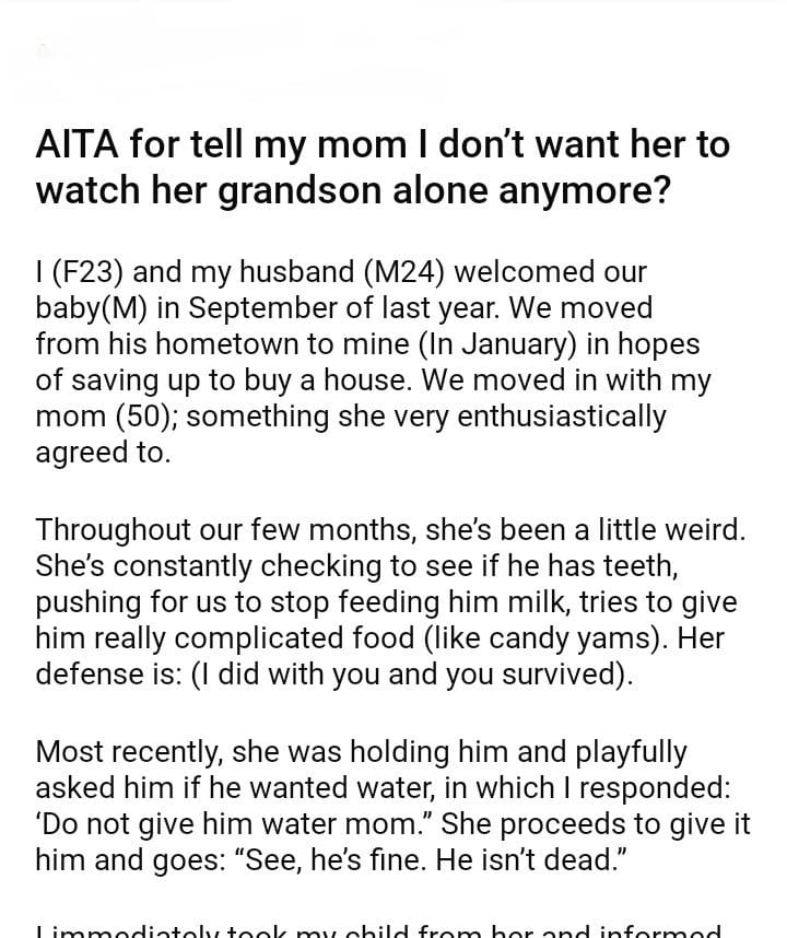 AITA for tell my mom I don’t want her to watch her grandson alone anymore?