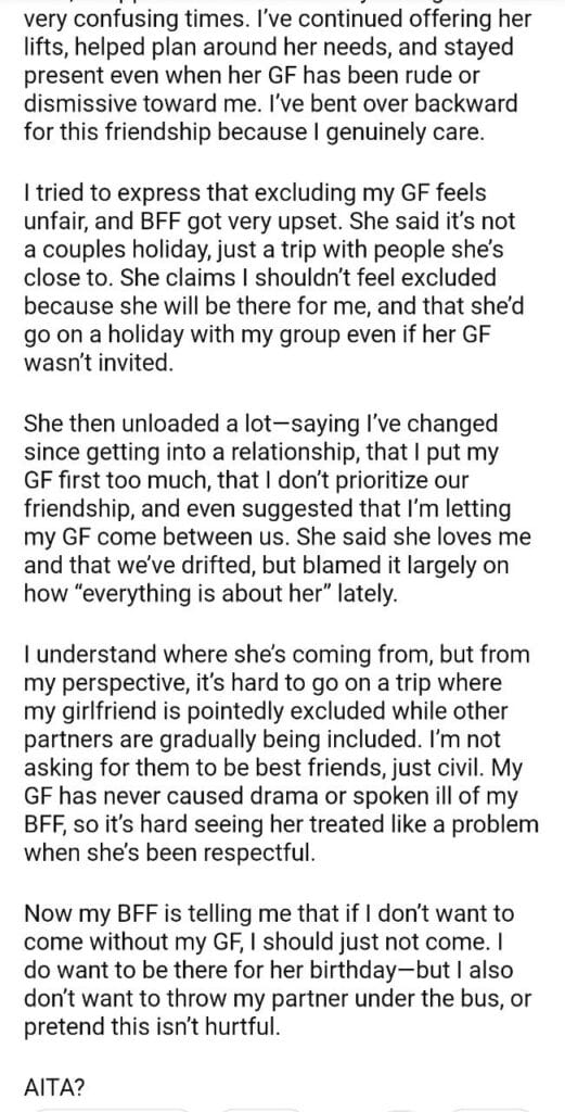 AITA for telling my best friend