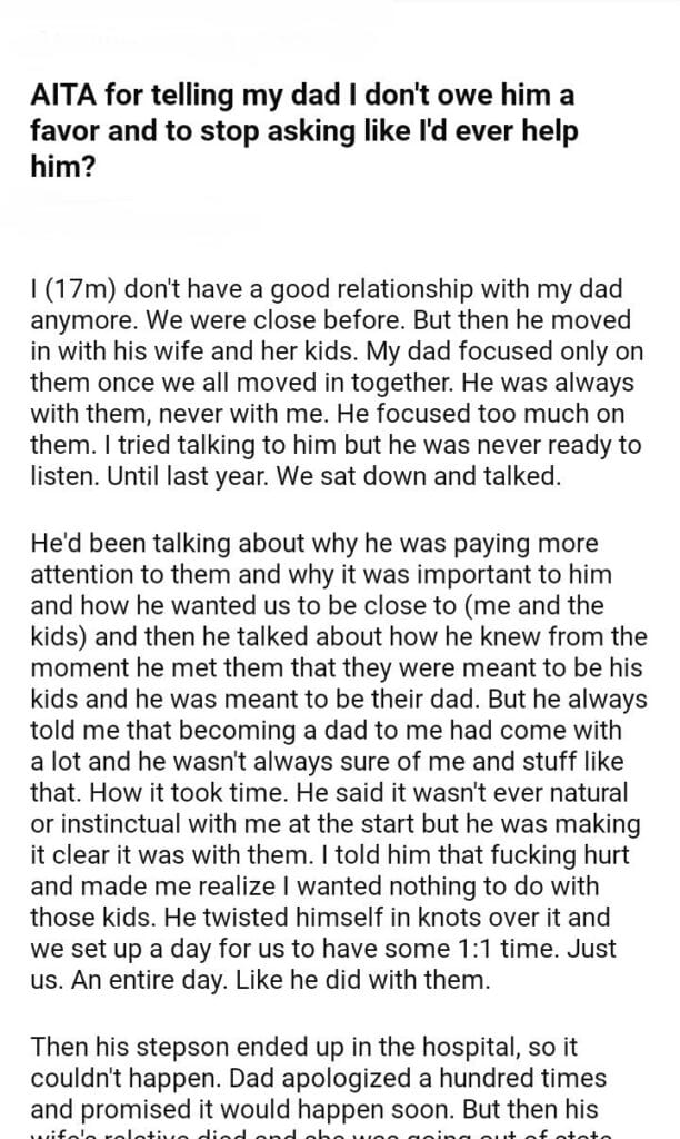 AITA for telling my dad I don’t owe him a favor