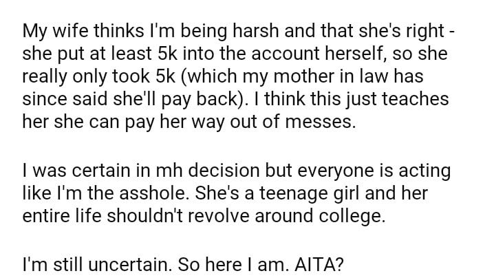 AITA For telling my daughter she can say goodbye to the rest of her college fund?