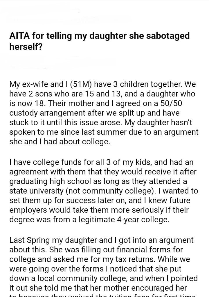 AITA for telling my daughter she did herself?