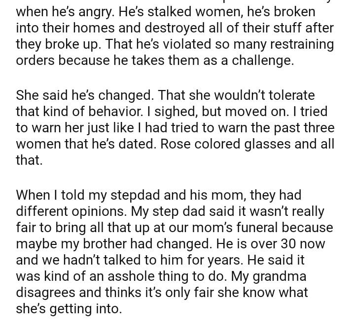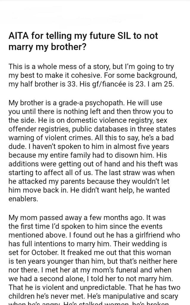 AITA for telling my future SIL to not marry my brother?