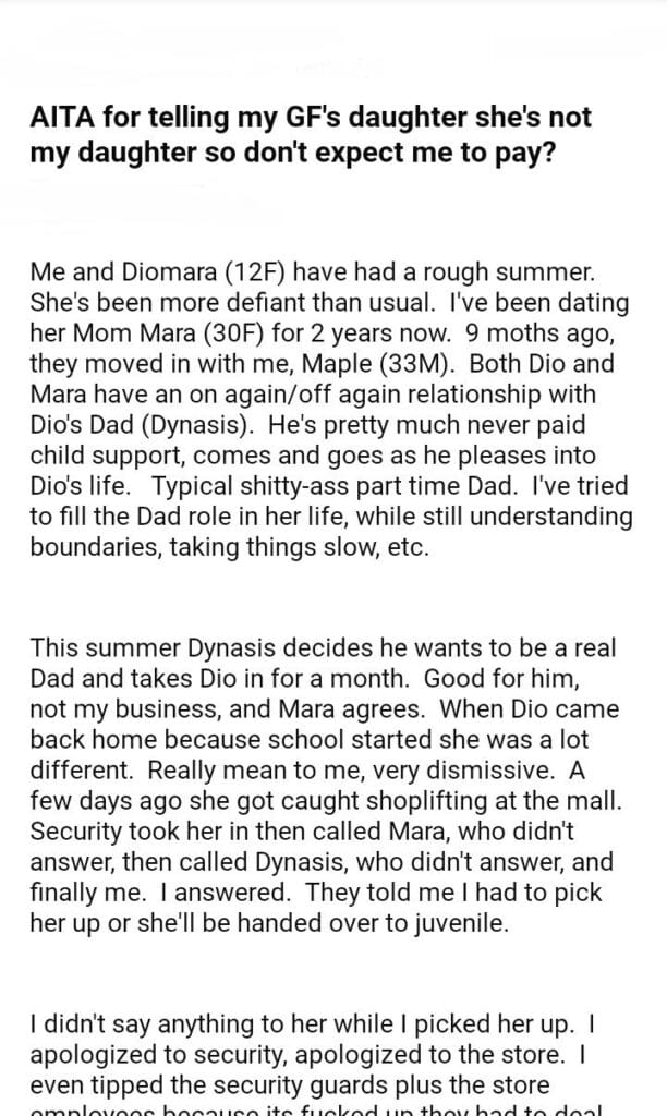 AITA for telling my GF’s daughter she’s not my daughter