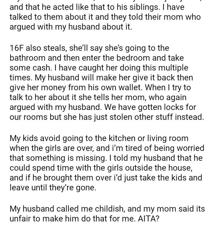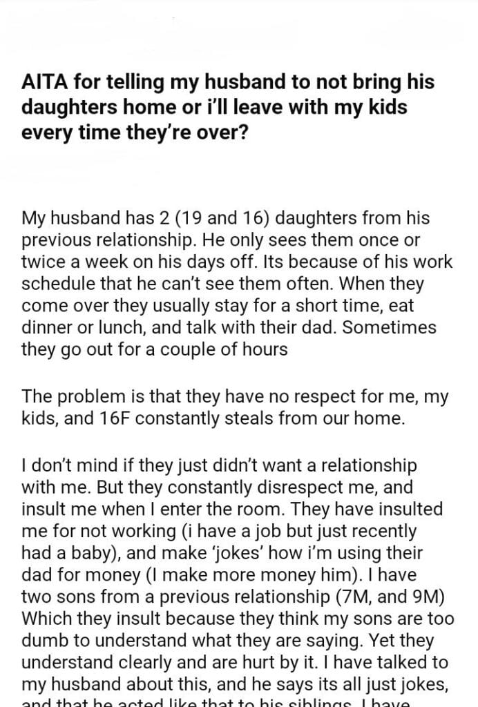 AITA for telling my husband to not bring his daughters home