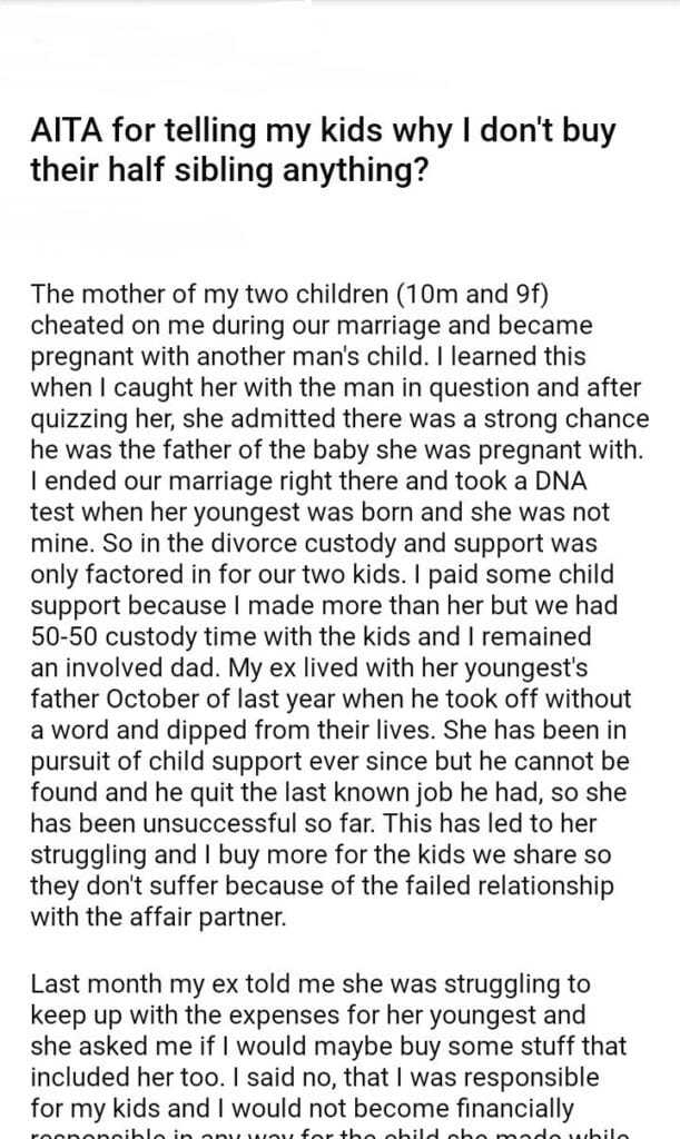 AITA for telling my kids why I don’t buy their half sibling anything?