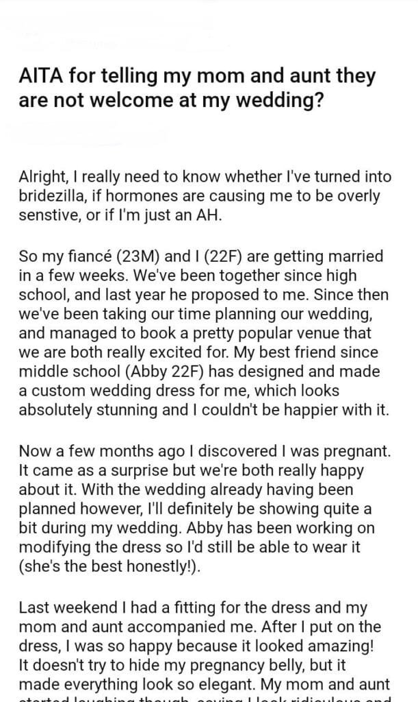 AITA for telling my mom and aunt they are not welcome at my wedding?