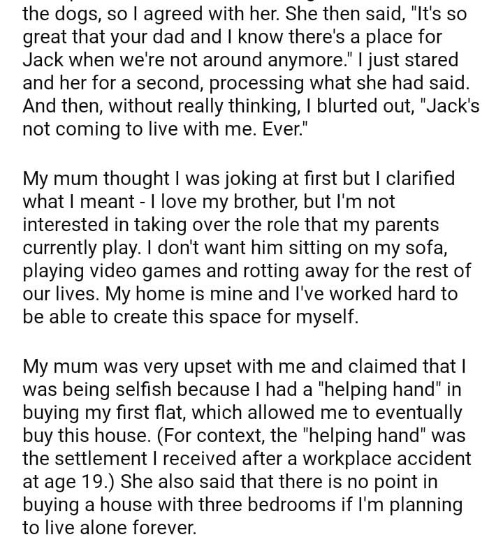 AITA for telling my parents that I won’t look after my brother when anything happens to them?