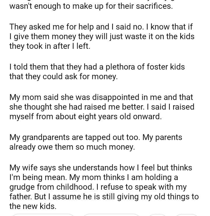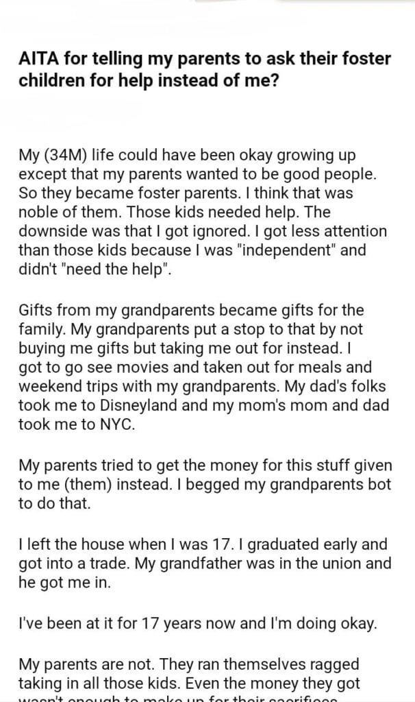 AITA For Telling My Parents To Ask Their Foster Children For Help Instead Of Me
