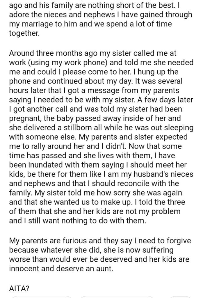 AITA for telling my sister and our parents that she and her kids are not my problem?