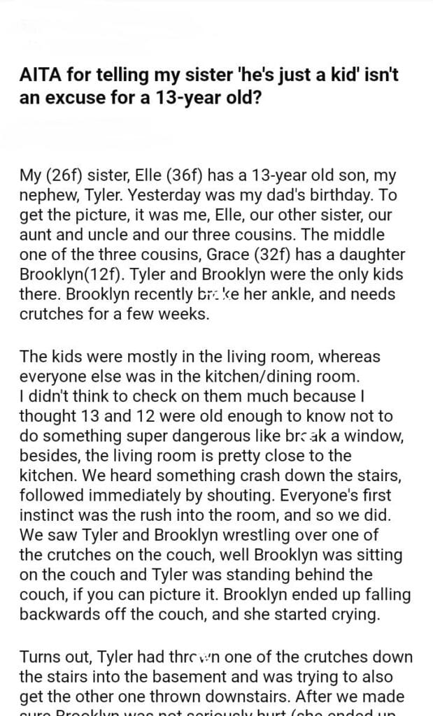 AITA for telling my sister ‘he’s just a kid’ isn’t an excuse