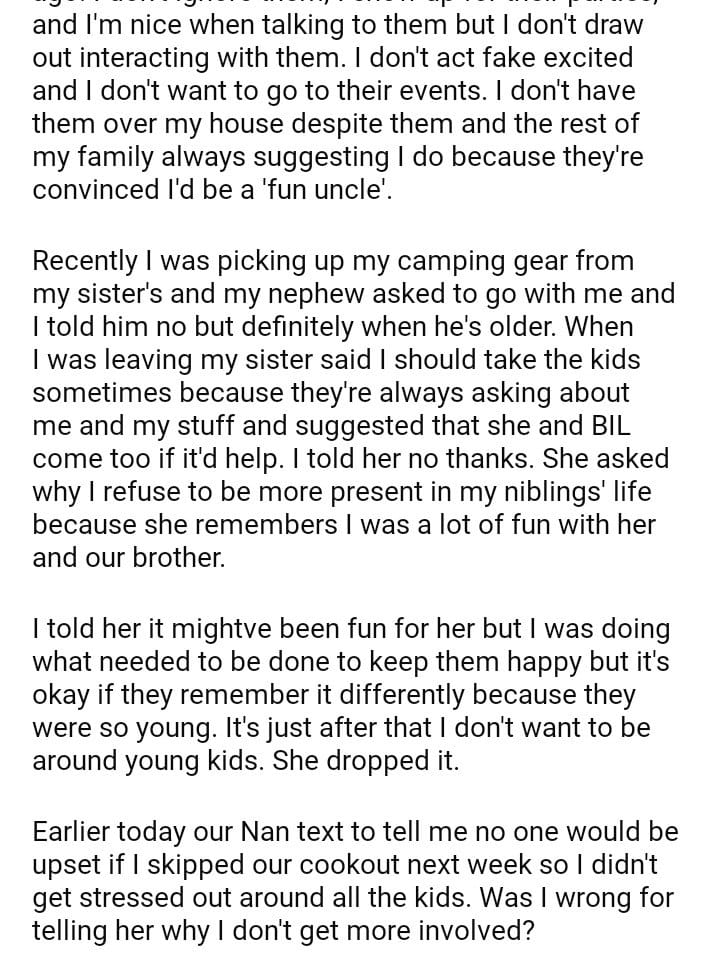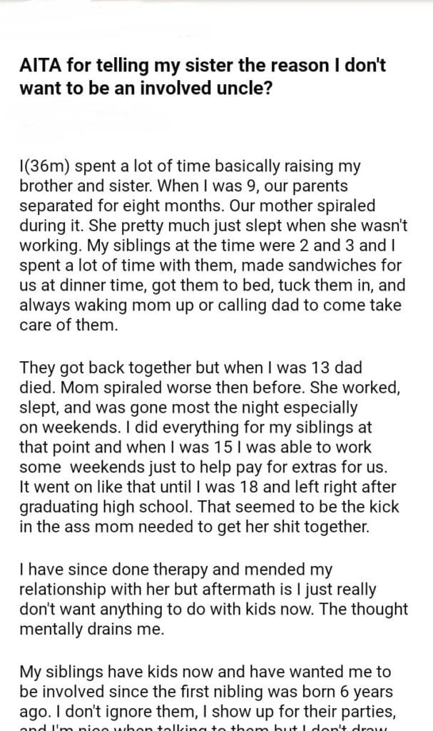 AITA for telling my sister the reason I don’t want to be an involved uncle?
