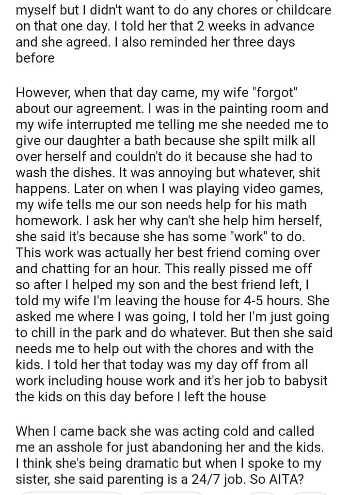 AITA for telling my wife it’s her job