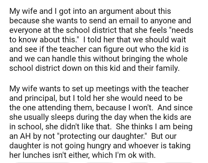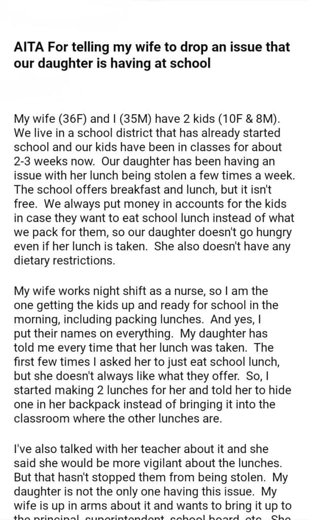 AITA For Telling My Wife To Drop An Issue That Our Daughter Is Having At School