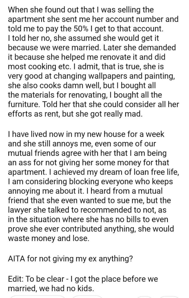 AITA for the apartment.