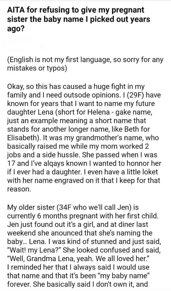 AITA for the baby name I picked out years ago?