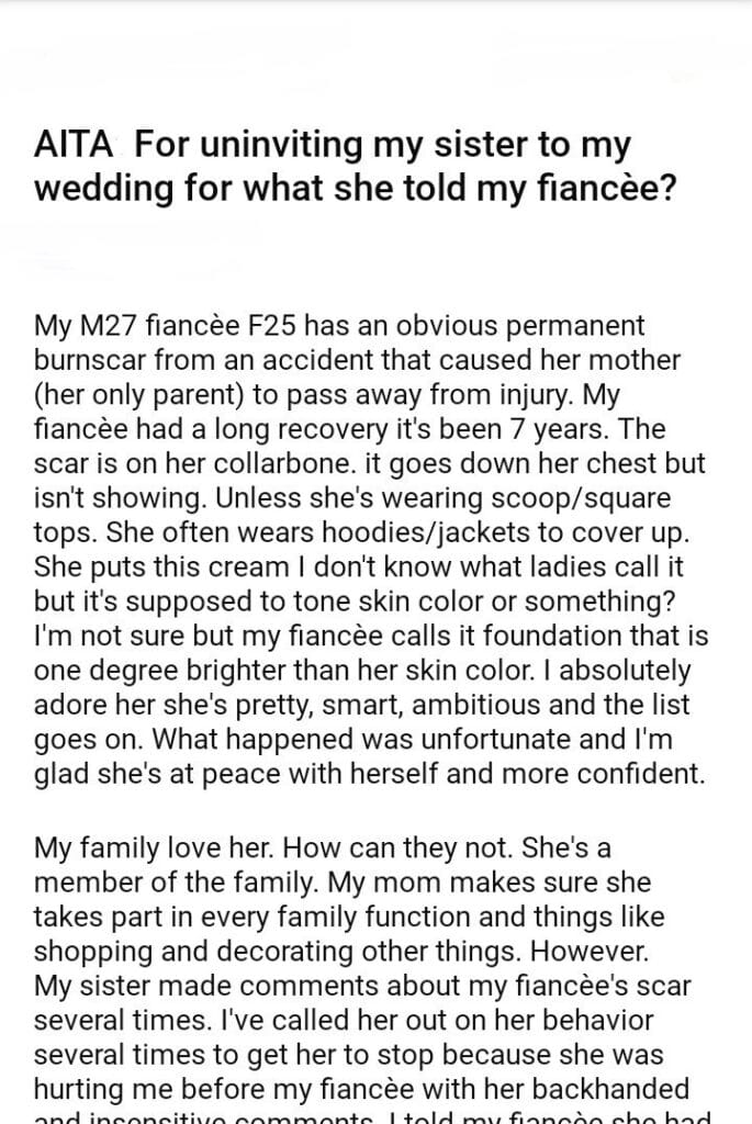 AITA: For uninviting my sister to my wedding for what she told my fiancèe?